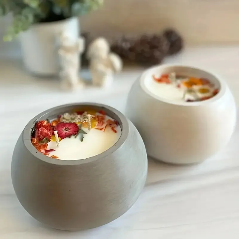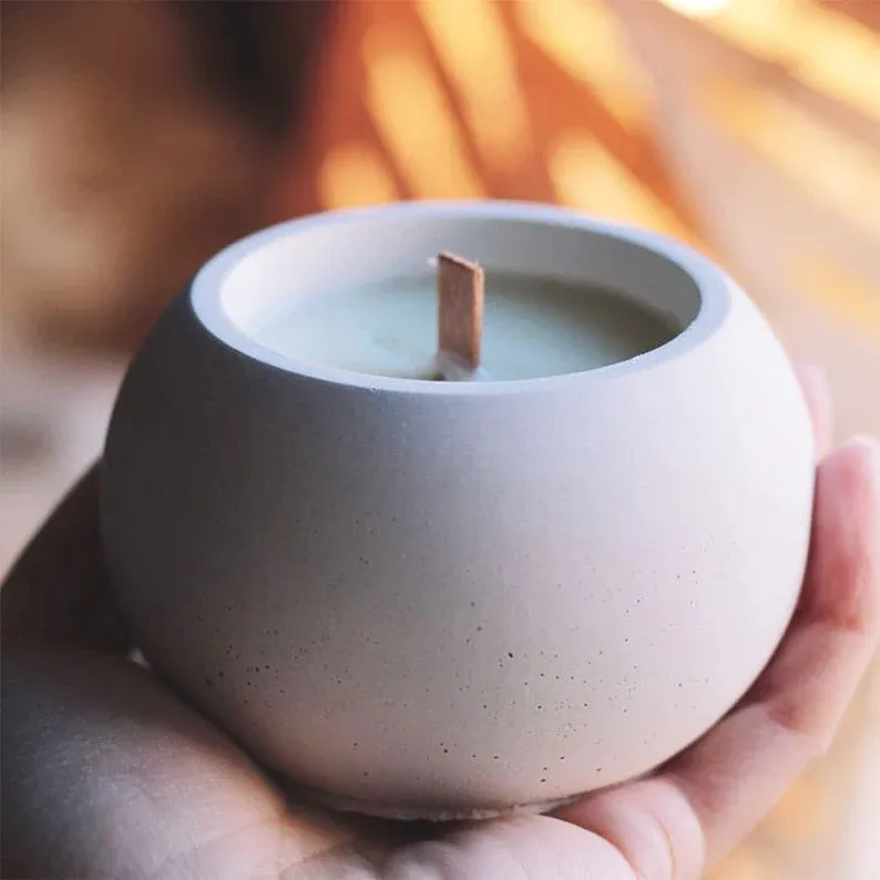 Esta maceta redonda de cemento combina suavidad en sus líneas y textura natural, creando una pieza equilibrada y atemporal. Su diseño esférico y acabado mate la hacen perfecta para usar como portavela, maceta pequeña o contenedor decorativo.